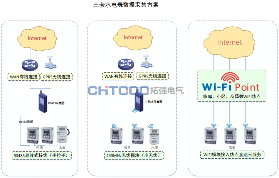 電能表本身不具備物聯網通訊能力,行業內通過(guò)在一定範圍內布置(zhì)采集器,將多隻電能(néng)表數據采集到一(yī)台采集器後(hòu)發(fā)送給雲端(duān)服務器。